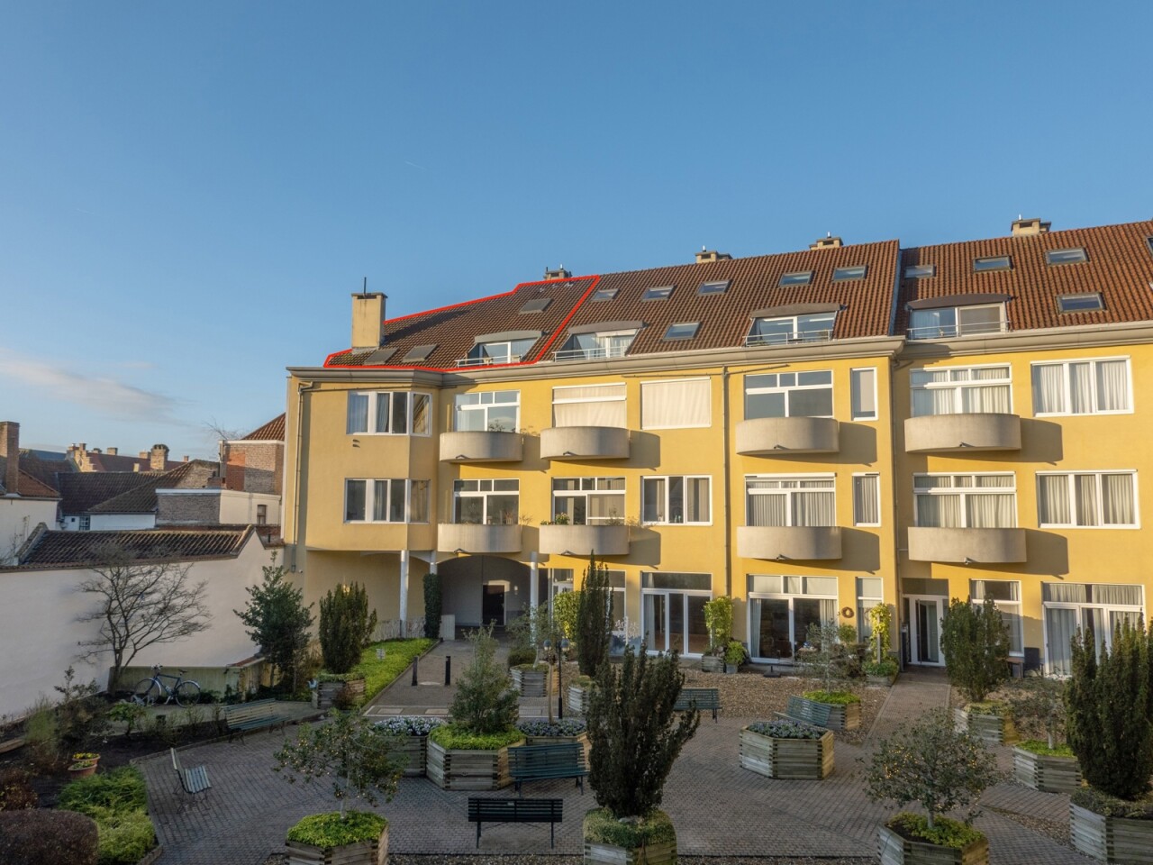 Mooi en ruim duplexappartement met drie slaapkamers en mogelijke garagebox en/of autostaanplaats, rustig gelegen in het centrum van Brugge, in een residentie met rustige, privatieve en verzorgde binnentuin. Indeling: inkom met ingemaakte vestiairekast, toilet en traphal. Woonkamer in parket, uitgevend op terras met morgenzon. Volledig ingerichte aparte keuken. Berging. Badkamer met douche, twee slaapkamers. Verdiep: grote slaapkamer, badkamer met ligbad en aansluiting voor wasmachine en droogkast. Polyvalente ruimte, met berging voor de gasbrander. Privé-kelder. Gemeenschappelijke fietsenberging gelegen op het gelijkvloers, naast de ingang van de residentie. Mogelijkheid tot aankoop makkelijk toegankelijke autobox en/of staanplaats in de residentie. Voor meer inlichtingen of een bezoek ter plaatse gelieve contact op te nemen met ons kantoor.