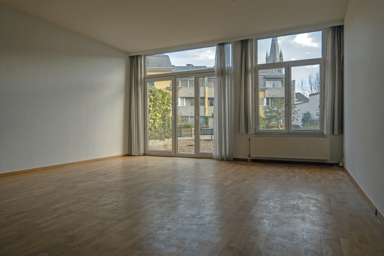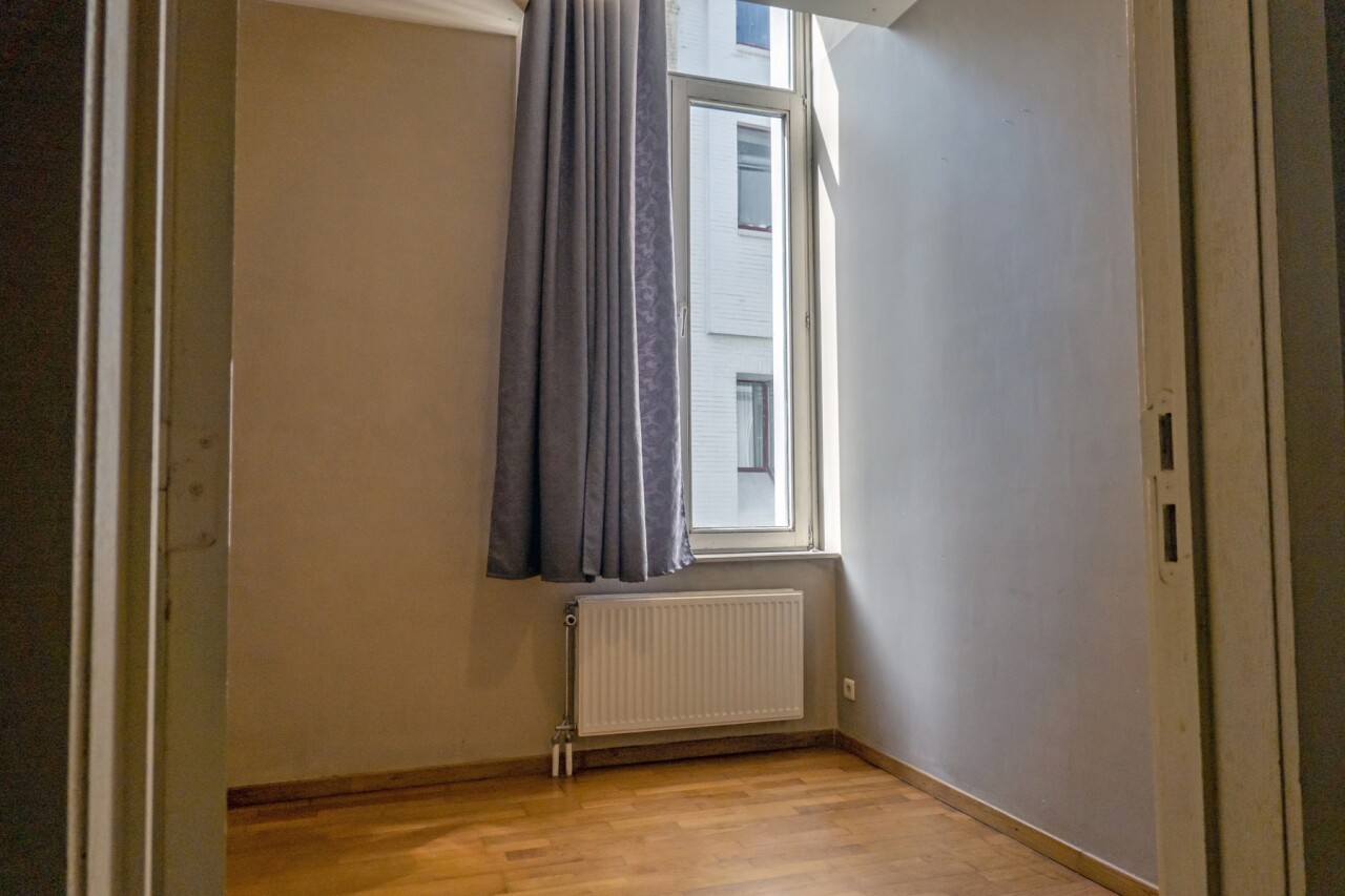 VANAFPRIJS !!! Op te knappen ruim gelijkvloers appartement met woonkamer van 40m² en plafond van 3,2 meter hoog, 2 slaapkamers, terras en dressing/bureau, gelegen in het centrum van Brugge. Indeling: inkom en ruime hal met toegang tot alle ruimtes. Woonkamer uitgevend op het terras, met aansluitend aparte keuken. Twee slaapkamers. Eén kamer geschikt voor dressing of bureau. Badkamer met ligbad. Apart toilet. Berging met aansluiting voor wasmachine. Privékleder op de -1. Gemeenschappelijke fietsenberging op het gelijkvloers, naast de inkom van de residentie. Mogelijkheid tot aankopen makkelijk toegankelijke en grote staanplaats op de -1 voor € 34.500,00. Voor meer inlichtingen of een bezoek ter plaatse gelieve contact op te nemen met ons kantoor. De voorgestelde prijs is een vanafprijs. Een bod moet hoger zijn dan die prijs.